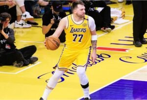 Luka Doncic empuja para evitar que los Lakers se vayan