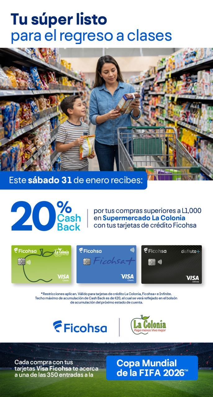 Tegucigalpa, Honduras | DiarioHouse.Com – El regreso a clases ya está tocando la puerta de miles de hogares hondureños, y con él llega la carrera contra el tiempo: completar la lista, adelantar compras, asegurar meriendas, bebidas, productos esenciales y todo lo que sostiene la rutina escolar. En ese momento clave, Supermercados La Colonia activa este sábado una promoción que se siente como un alivio directo: 20% de cashback al pagar con tarjetas de crédito Ficohsa La Colonia, Ficohsa+ e Infinite.