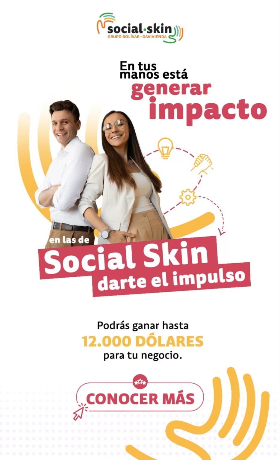 Social Skin 2026 no se presenta como una competencia simbólica. Davivienda y Seguros Bolívar sostienen el programa como un sistema integral de aceleración, donde el capital viene acompañado de herramientas que normalmente solo están disponibles para startups con acceso a inversionistas o incubadoras privadas.
